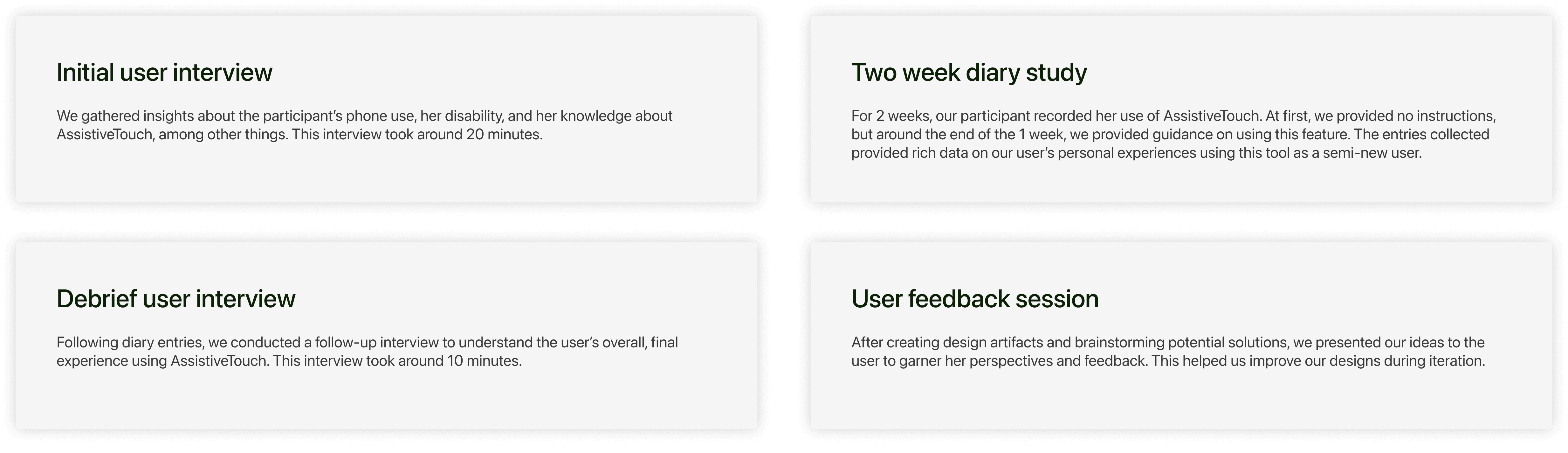 Through a combination of literature reviews, user interviews, and a diary study, we were able to identify major challenges with this accessibility feature.
