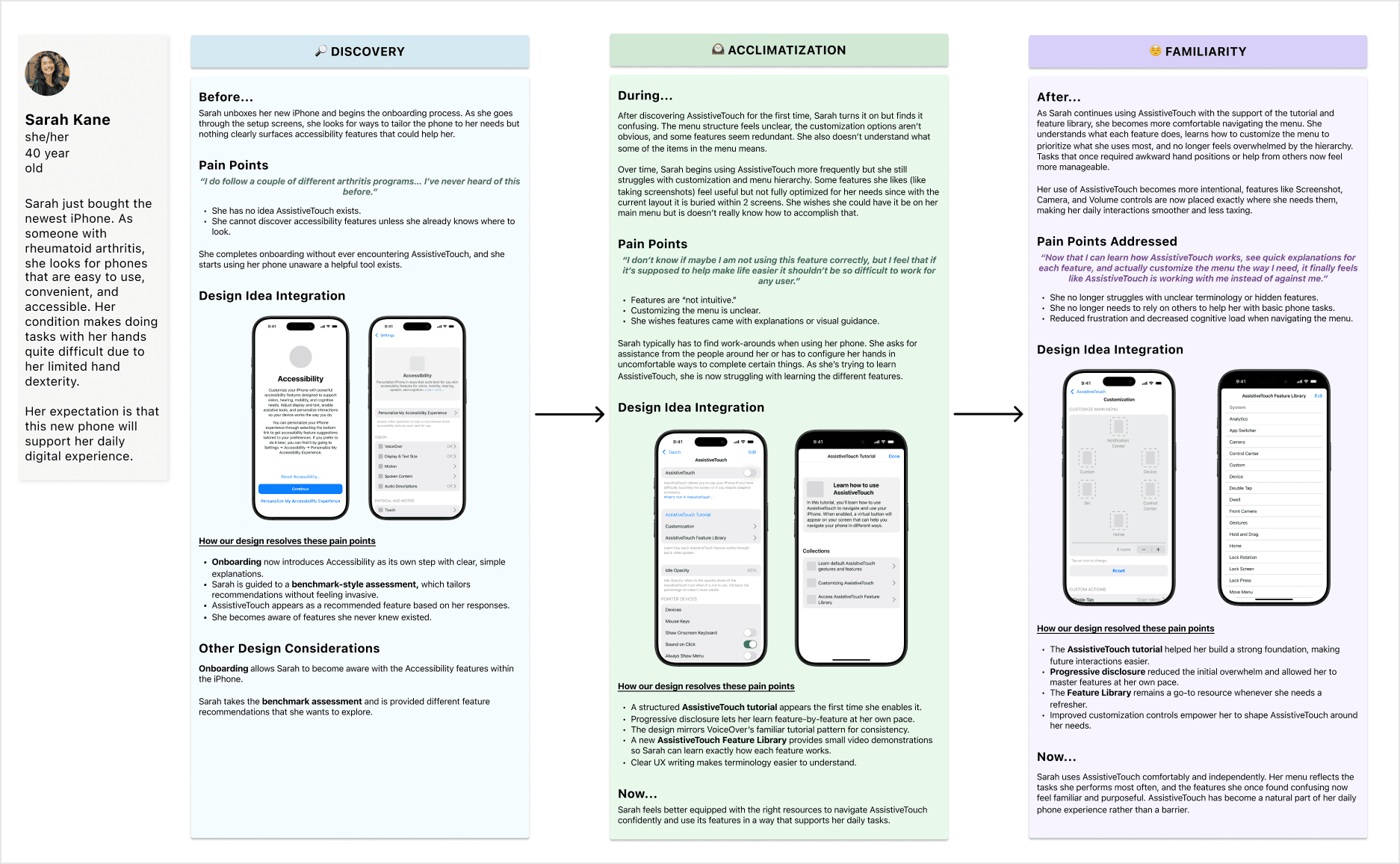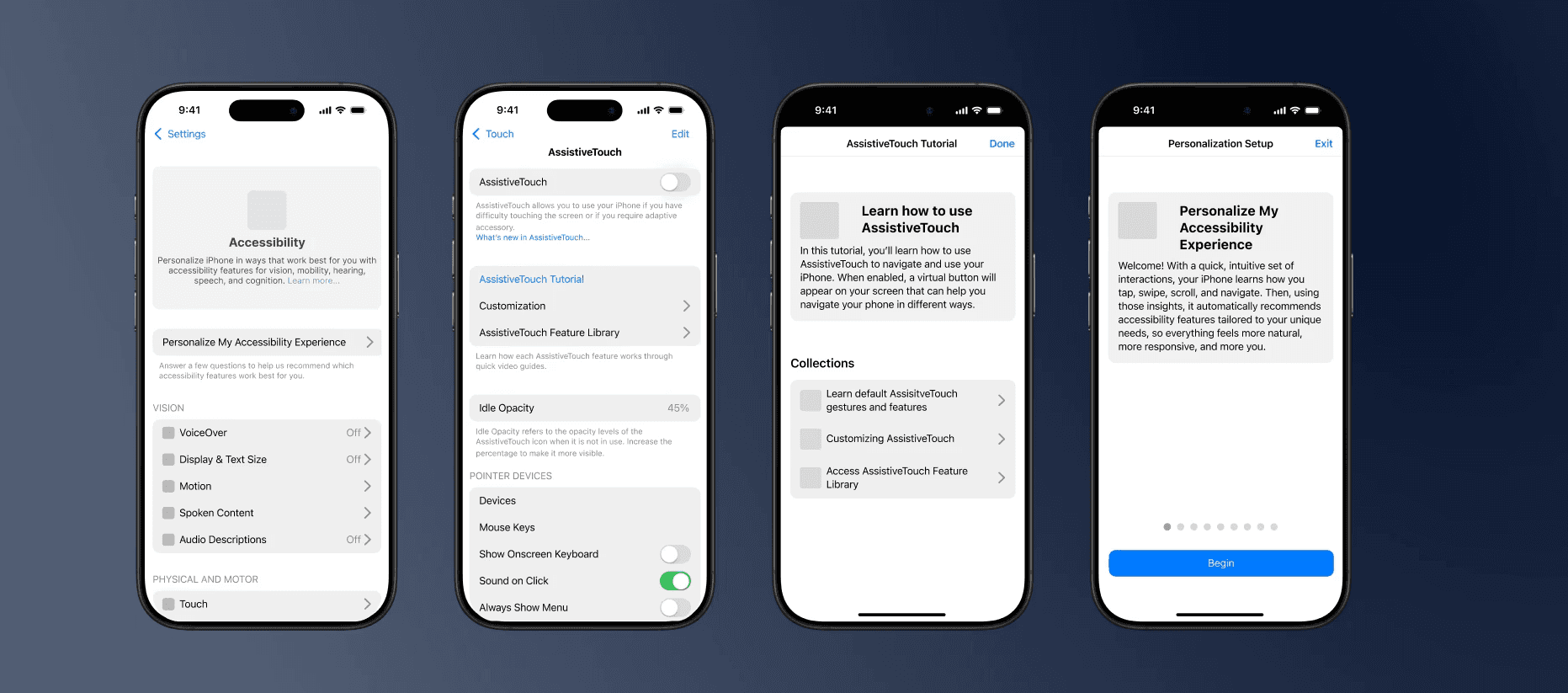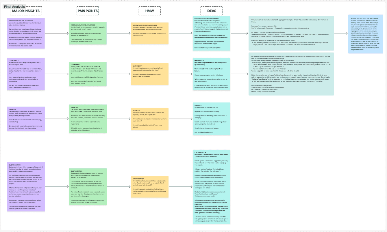How might we make AssistiveTouch easier to find, learn, and personalize so that users with motor impairments can benefit from it with less effort and greater confidence?