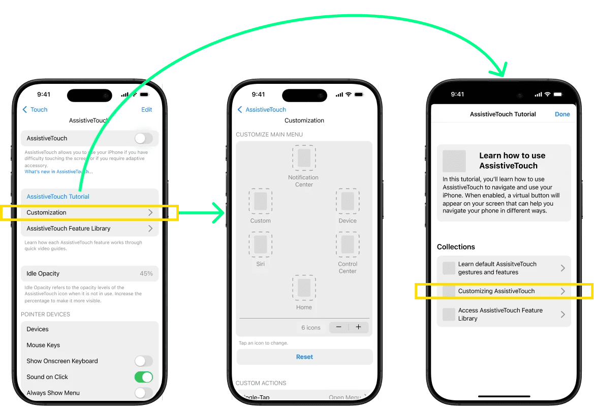 Incorporate a designated customization section in the AssistiveTouch walkthrough